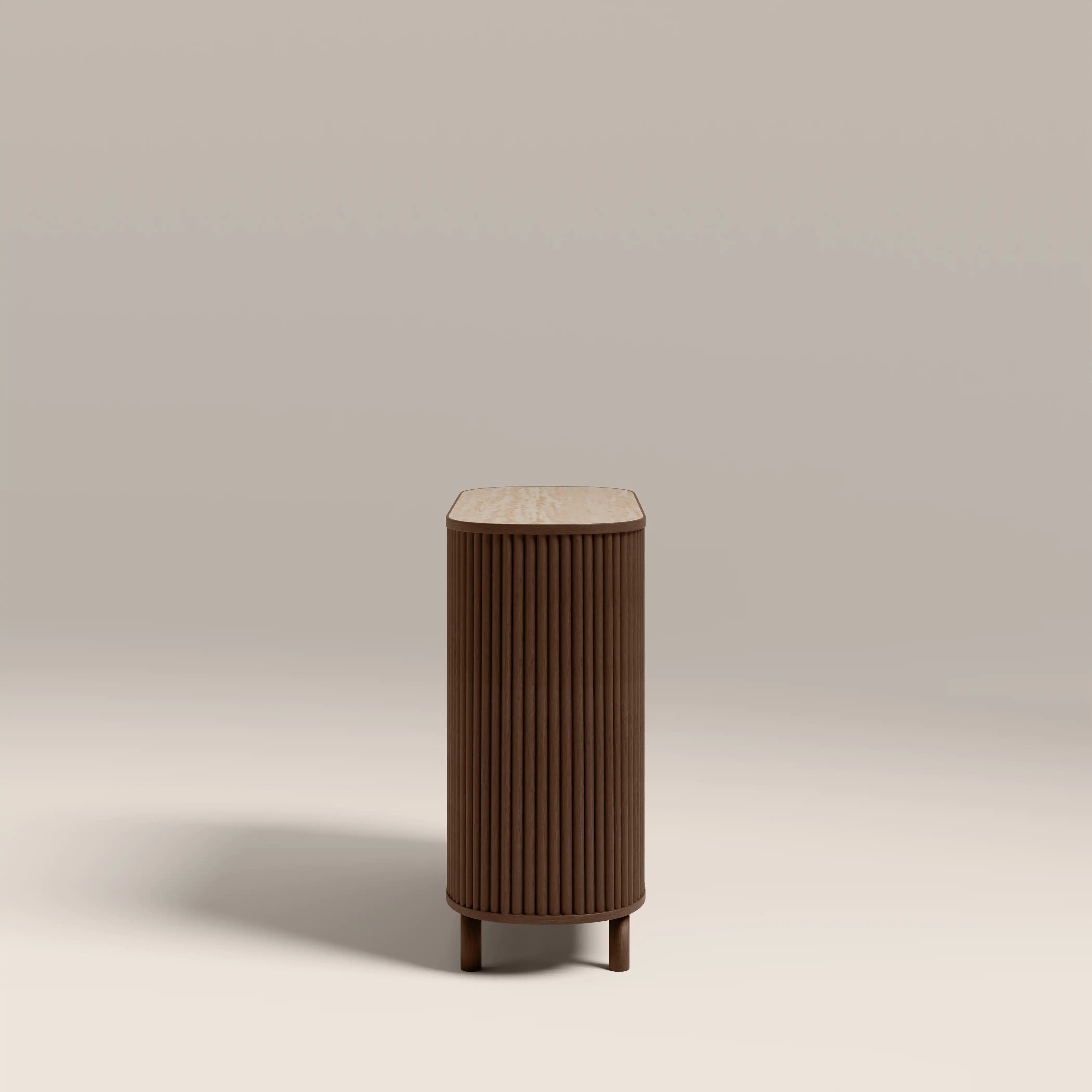 Natural Travertine Effect Sintered Stone & Smoked Walnut