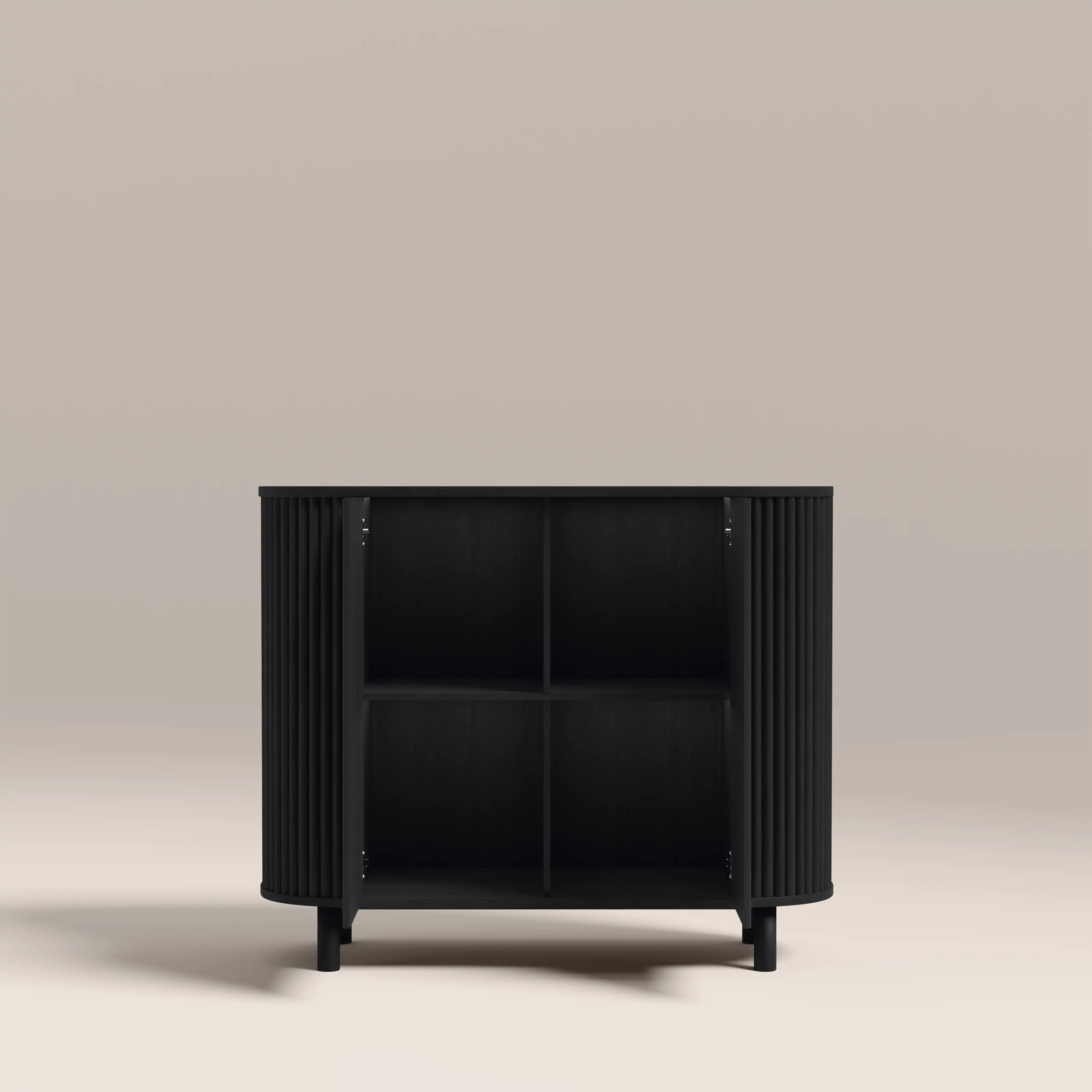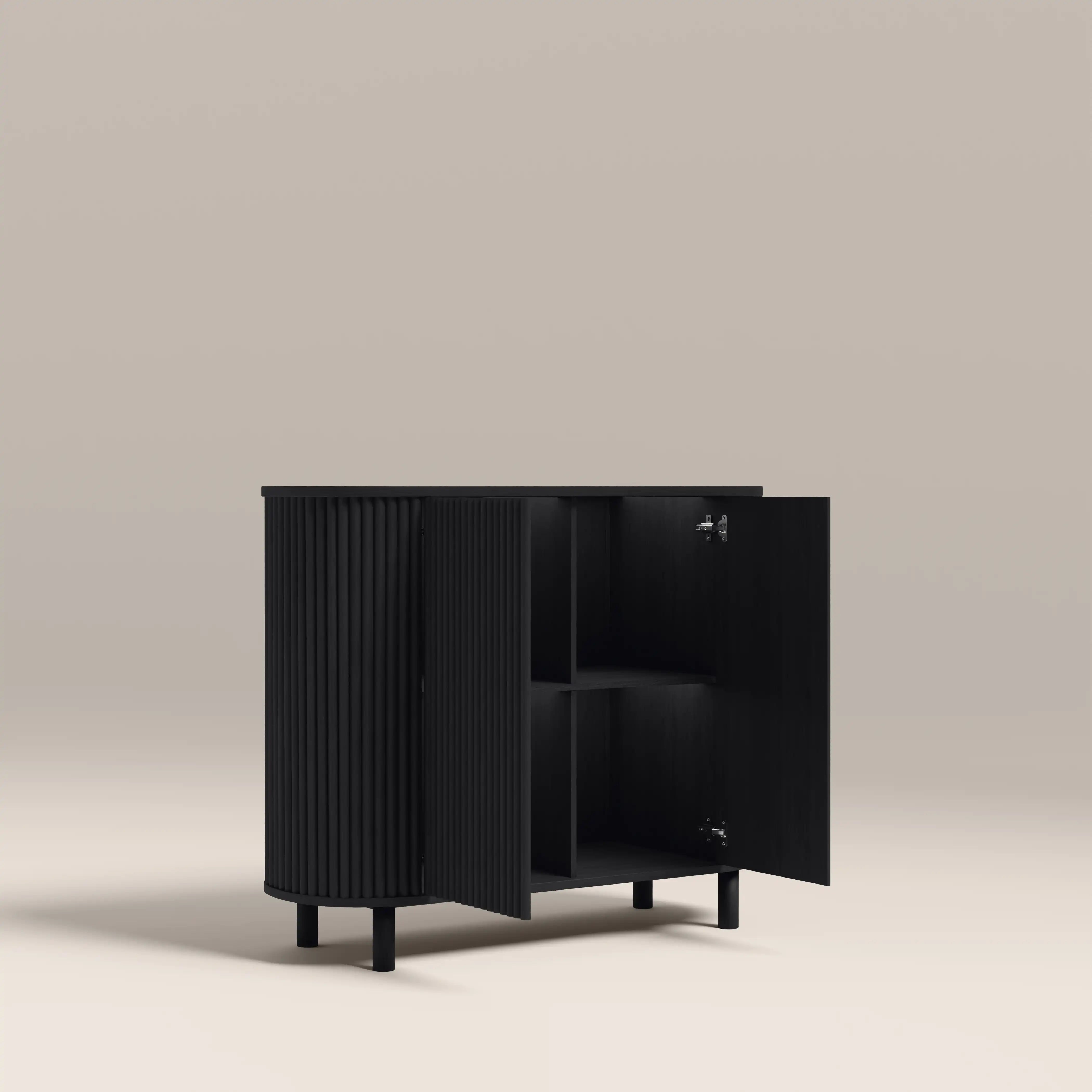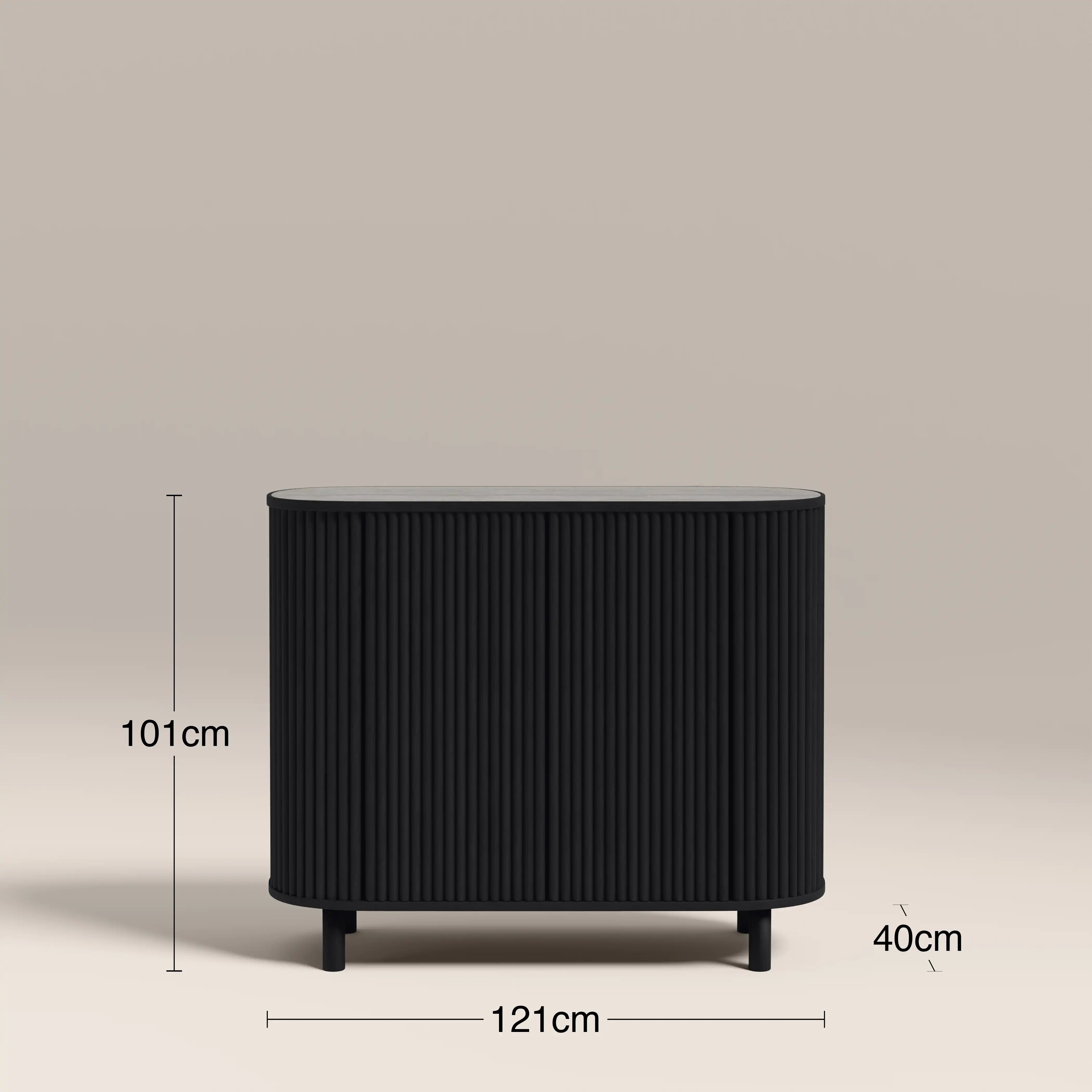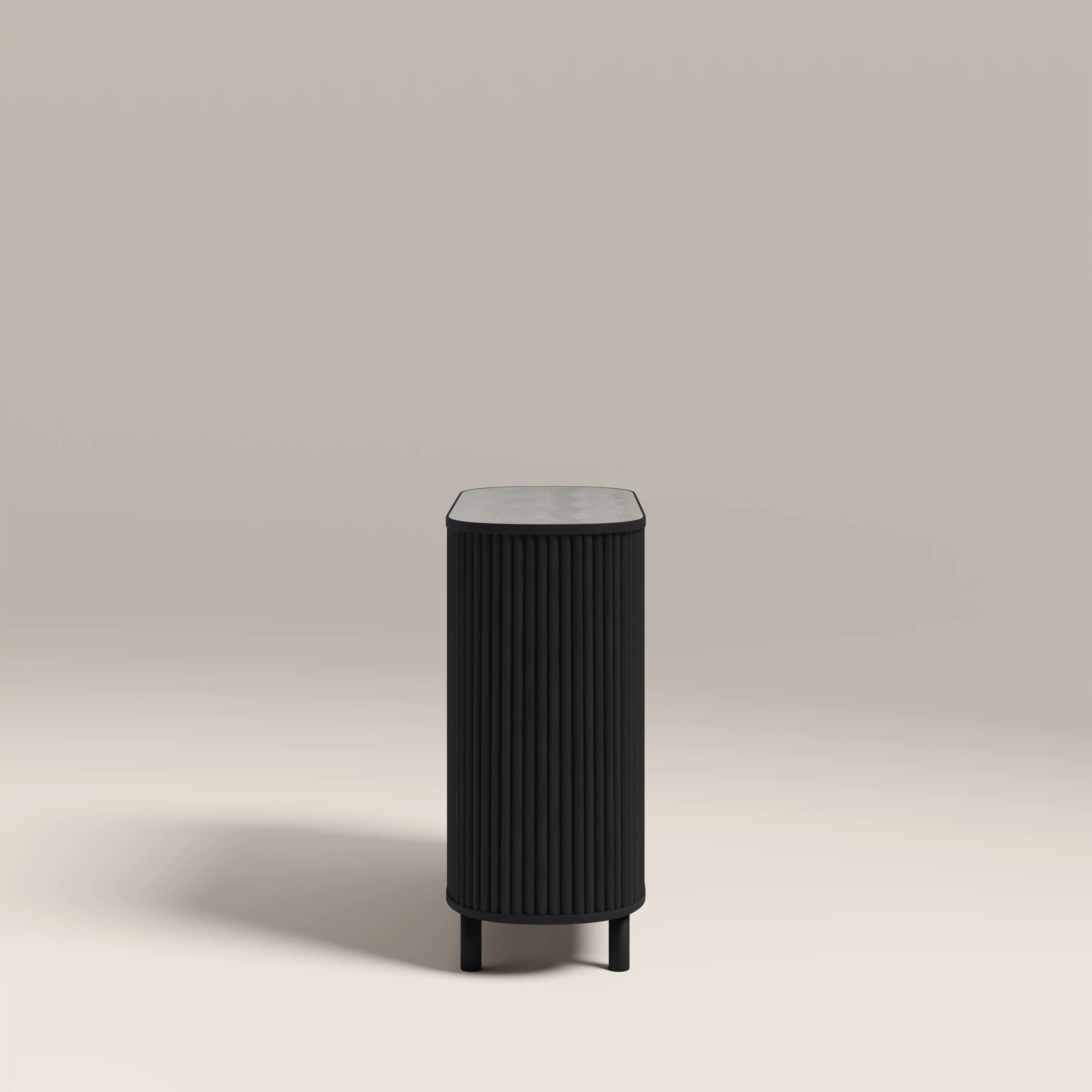 Designed for modern interiors that value both aesthetics and performance, the Santana 2 Door Sideboard brings natural textures and timeless materials into perfect harmony. Crafted with ribbed doors in a black wood veneer finish and topped with a sintered stone slab in a smoked grey travertine effect, the Santana has ample storage space with 4 spacious compartments and adjustable shelving. Whether you're hosting a movie night or curating a calm, minimalist sanctuary, this wood sideboard adds a layer of understated luxury.