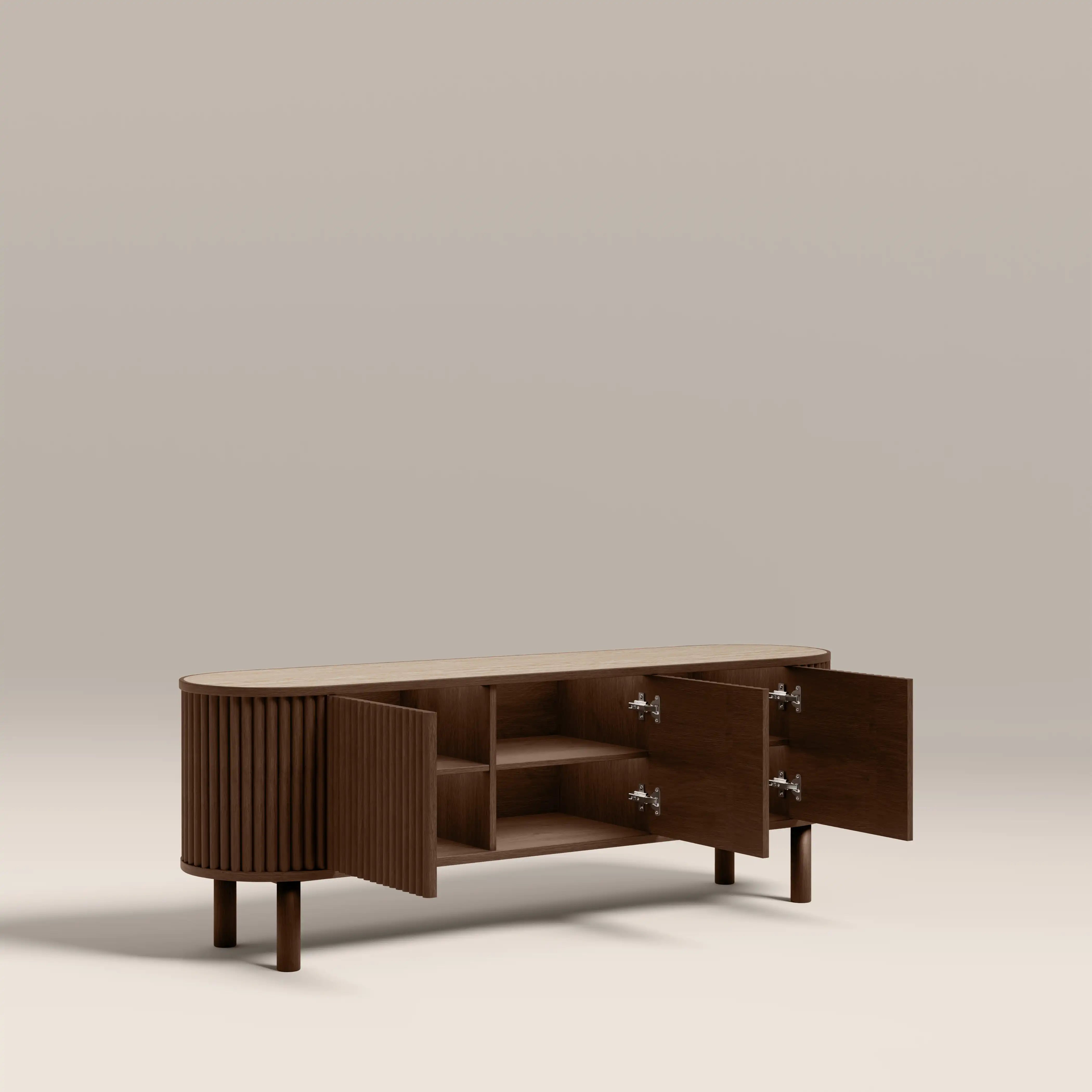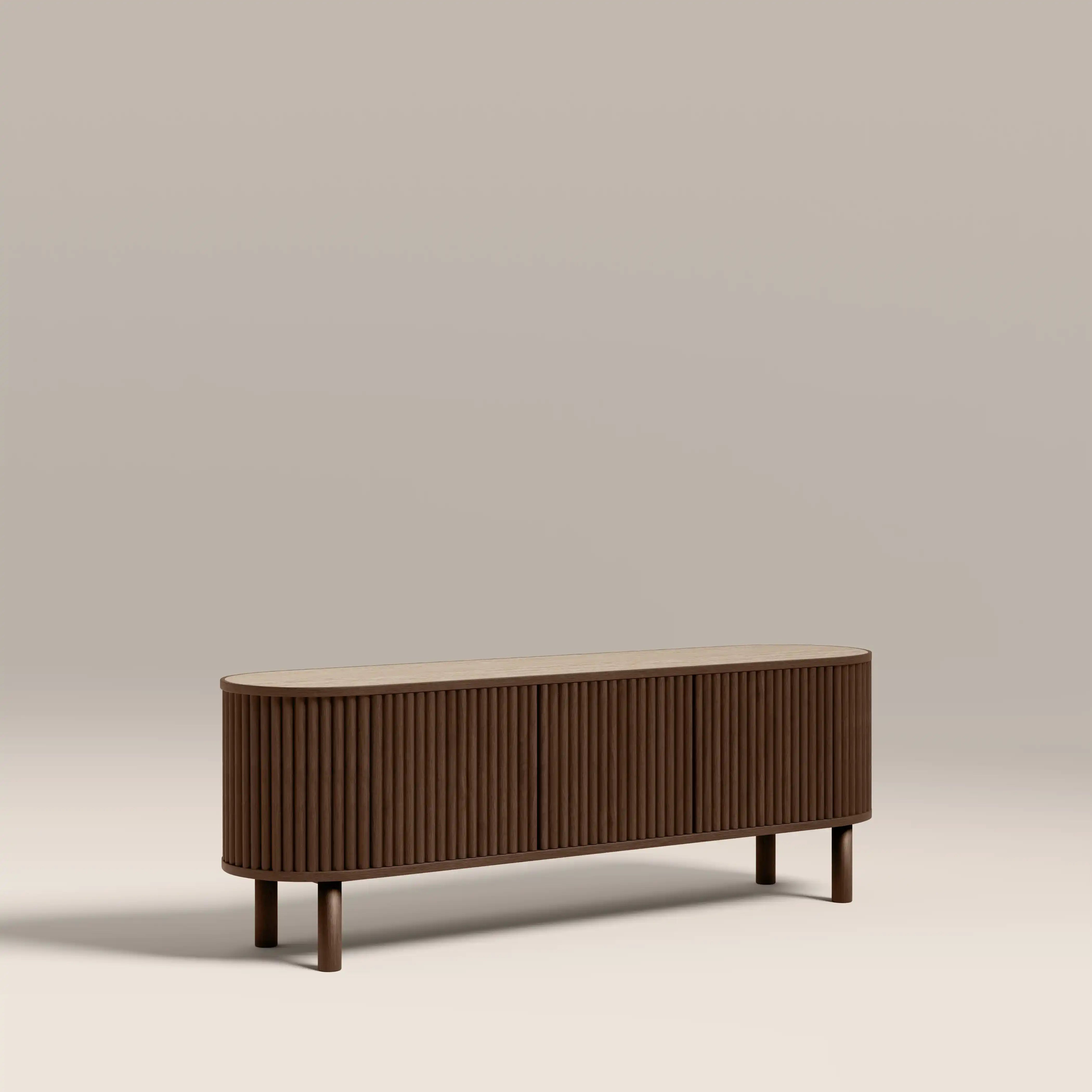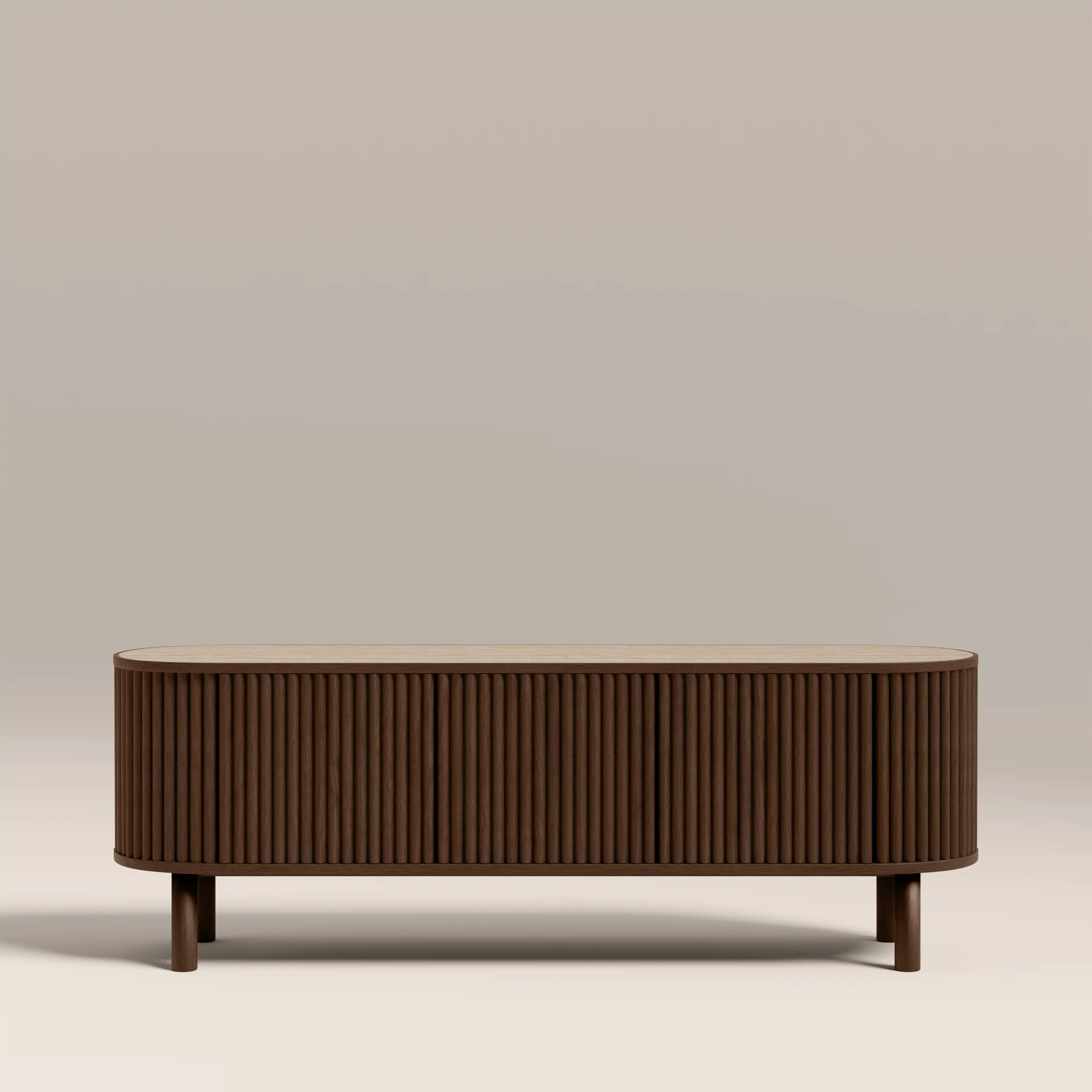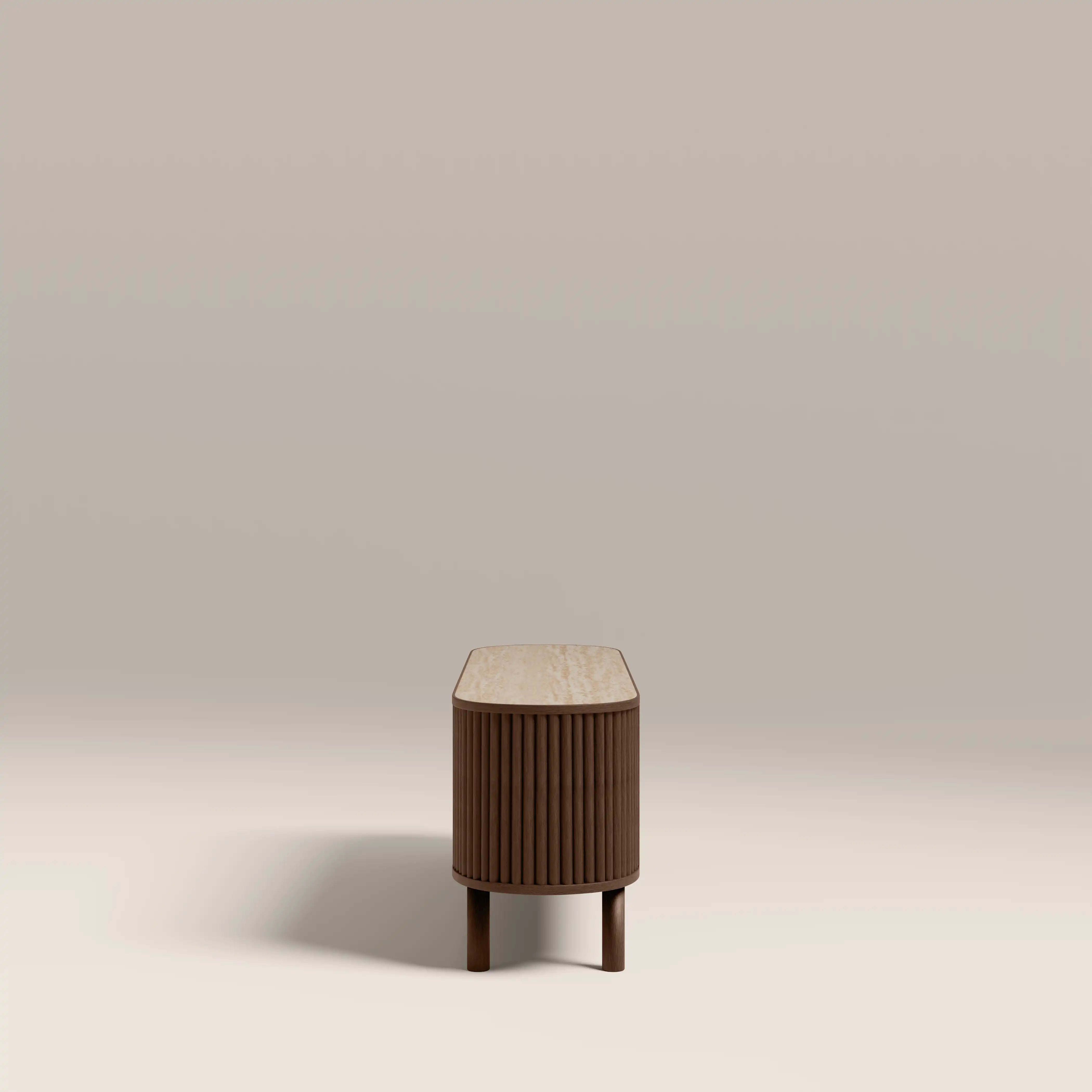 Natural Travertine Effect Sintered Stone & Smoked Walnut