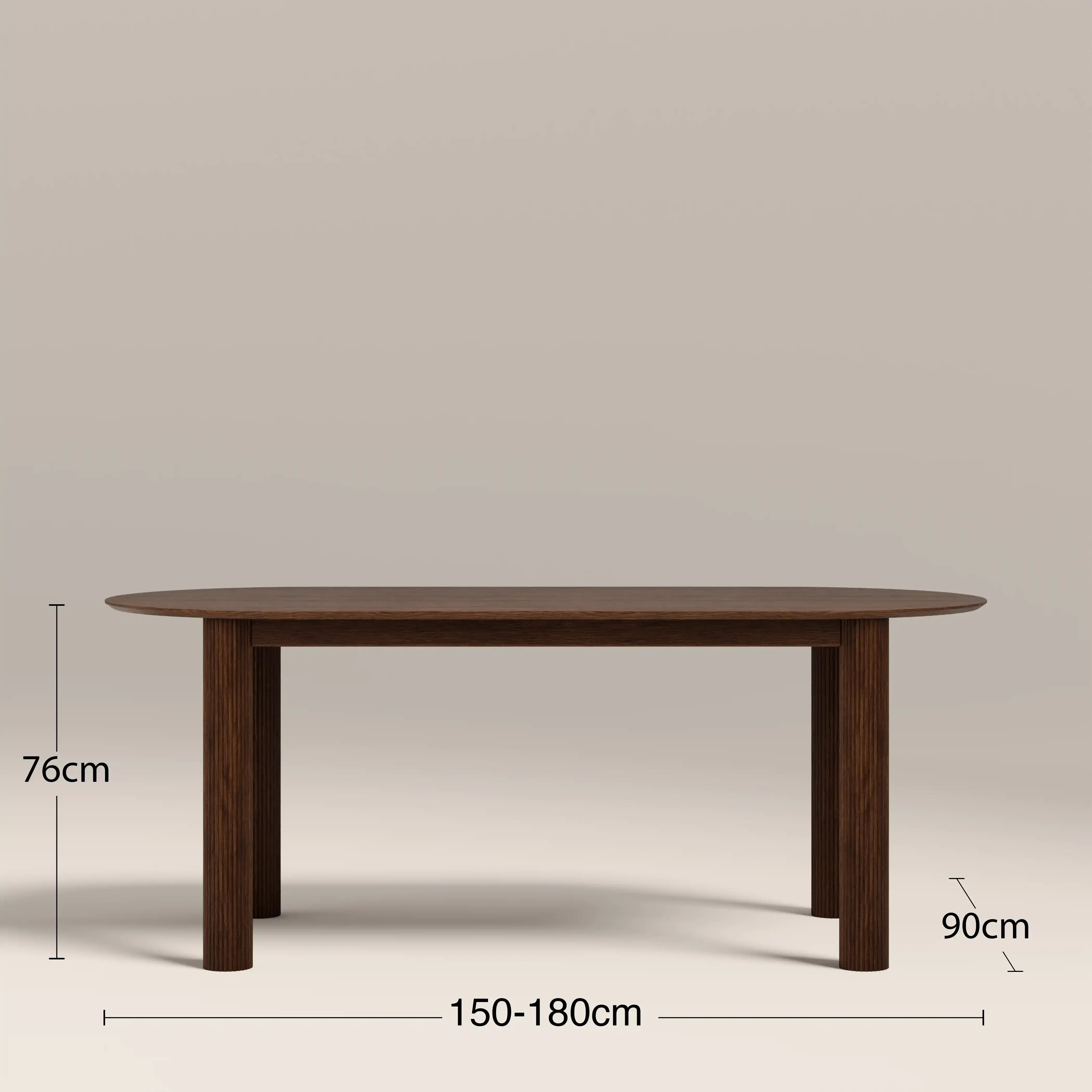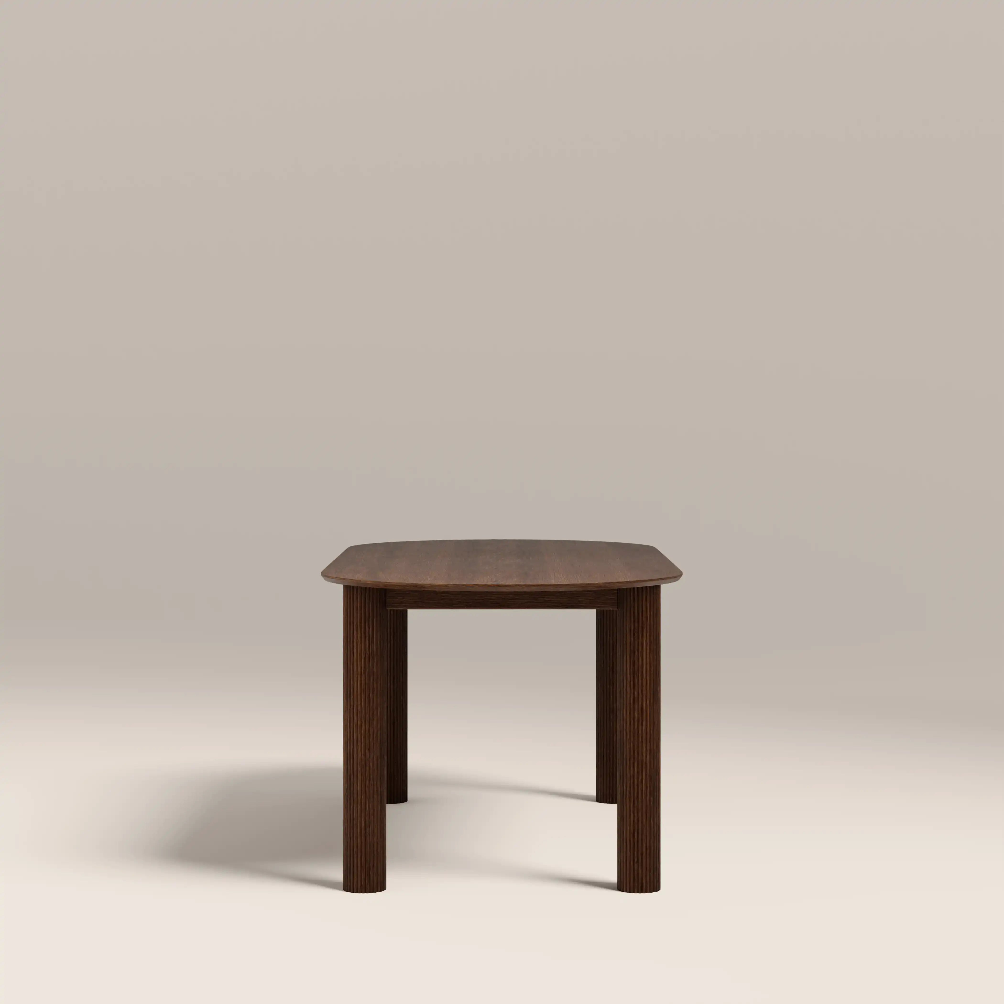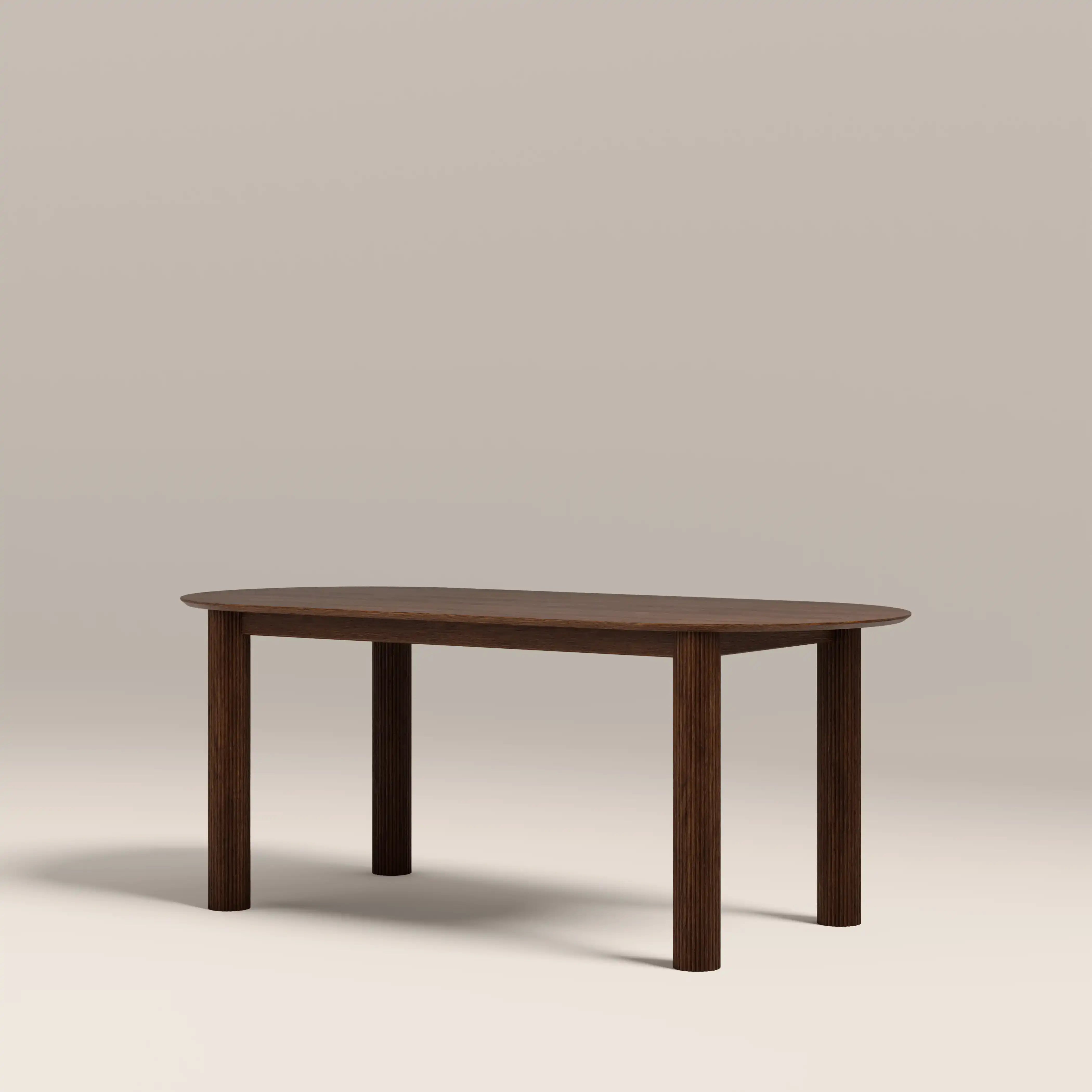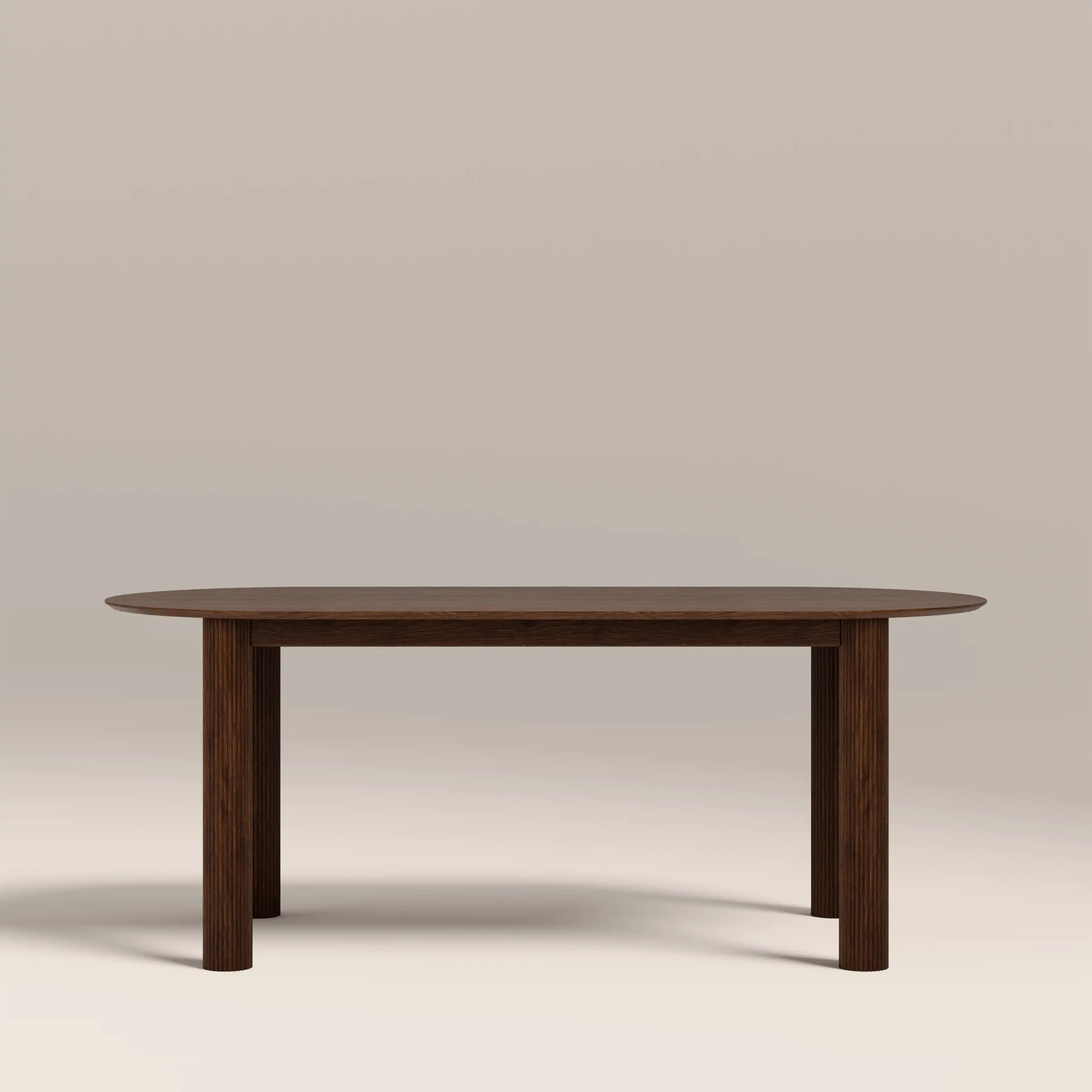 The Skylar 6 Seater Dining Table celebrates symmetry for a statement piece that oozes refined Italian design. The smooth oval top, frame and legs are made from solid wood, stained in walnut that highlights the natural grains within the wood. Note the ribbed detailing on the legs that really elevate this design from a simple dining table to exceptional modern styling for your dining space.