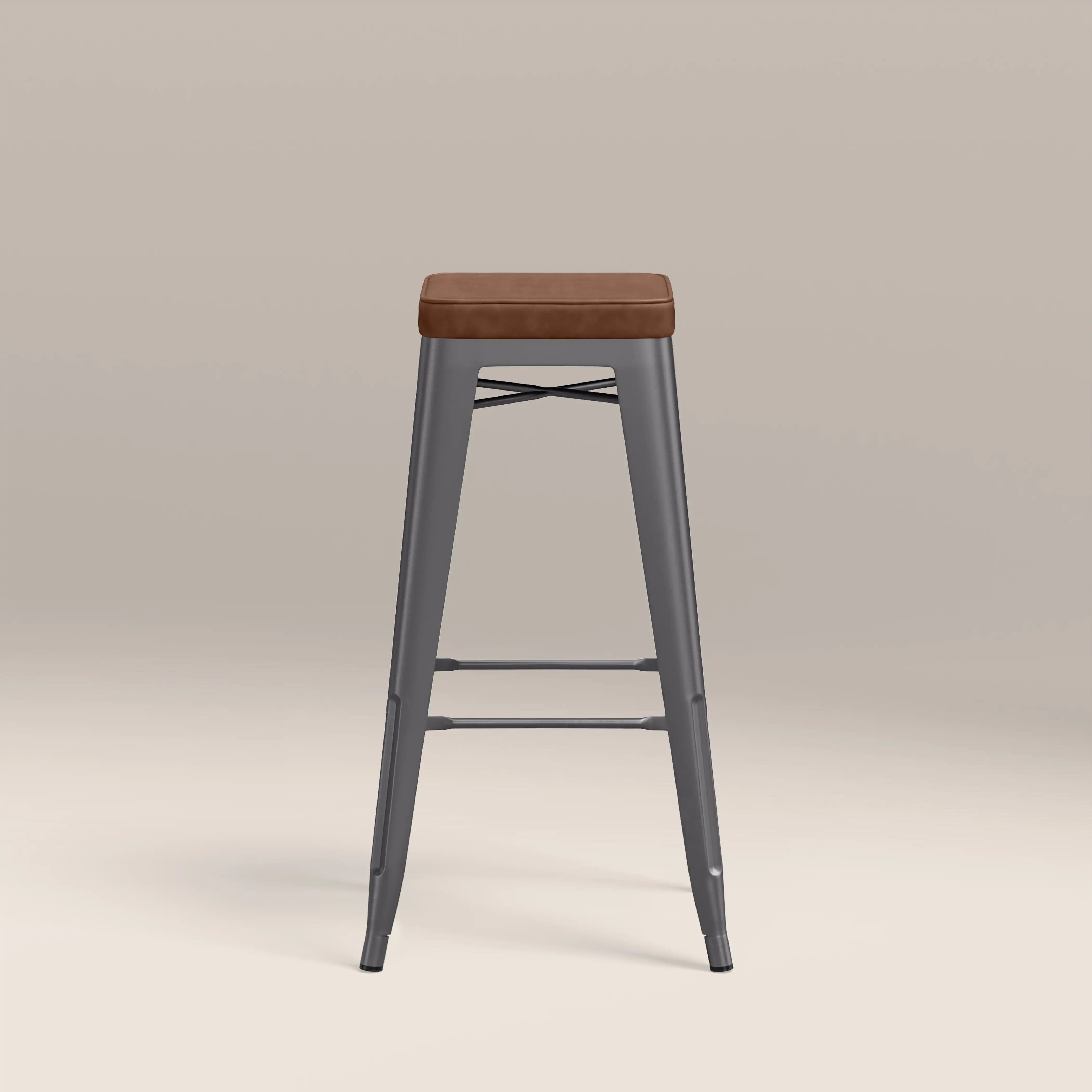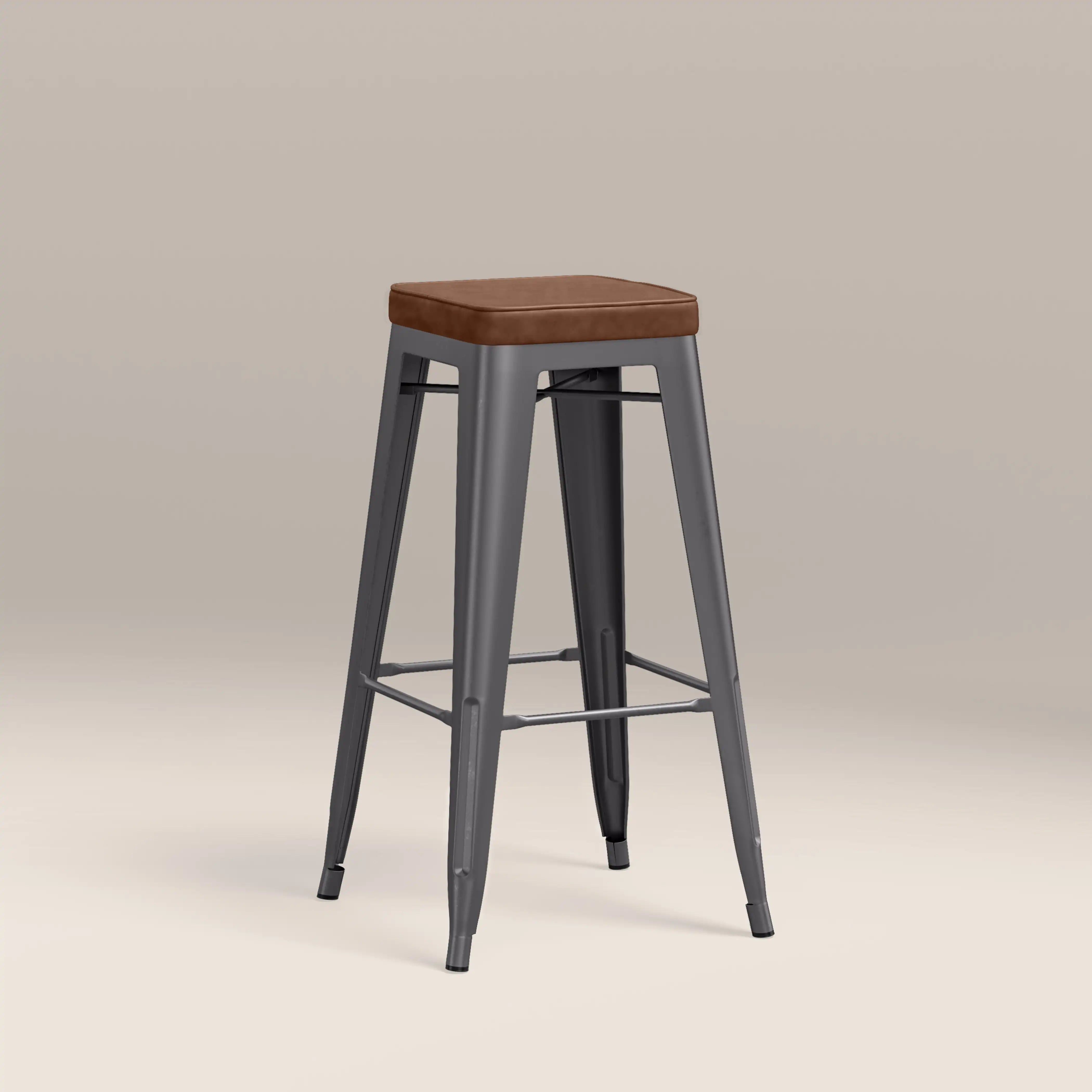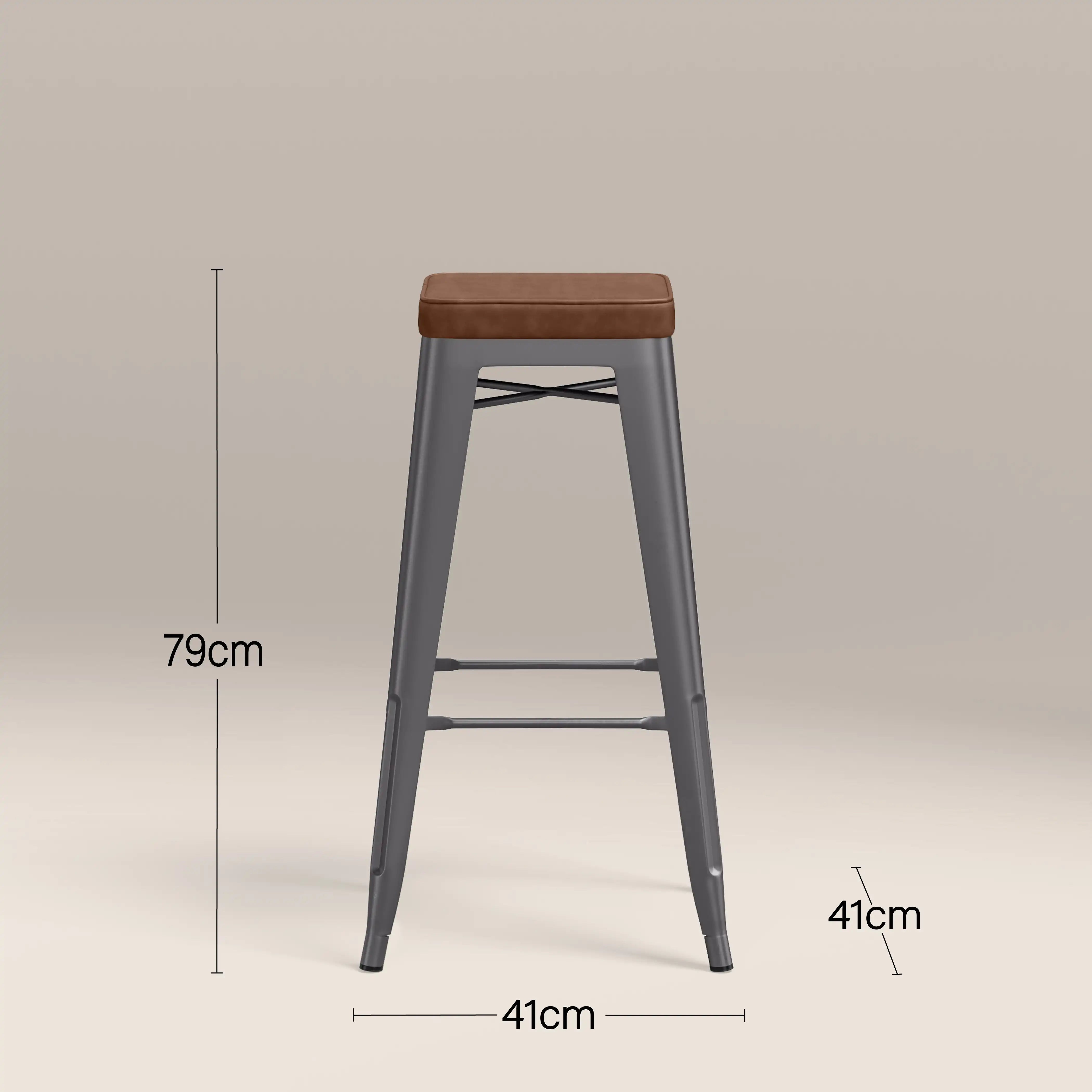 Inspired by Xavier Pauchard Tolix range, this industrial rustic style showcases a sturdy metal frame in a gunmetal finish with a tan faux leather seat. The Tolix Bar Stool is the epitome of industrial design in a classic versatile style, not to mention durable; perfect for kitchen islands. An ideal space-saving solution, the Tolix Stool range is easily stackable.