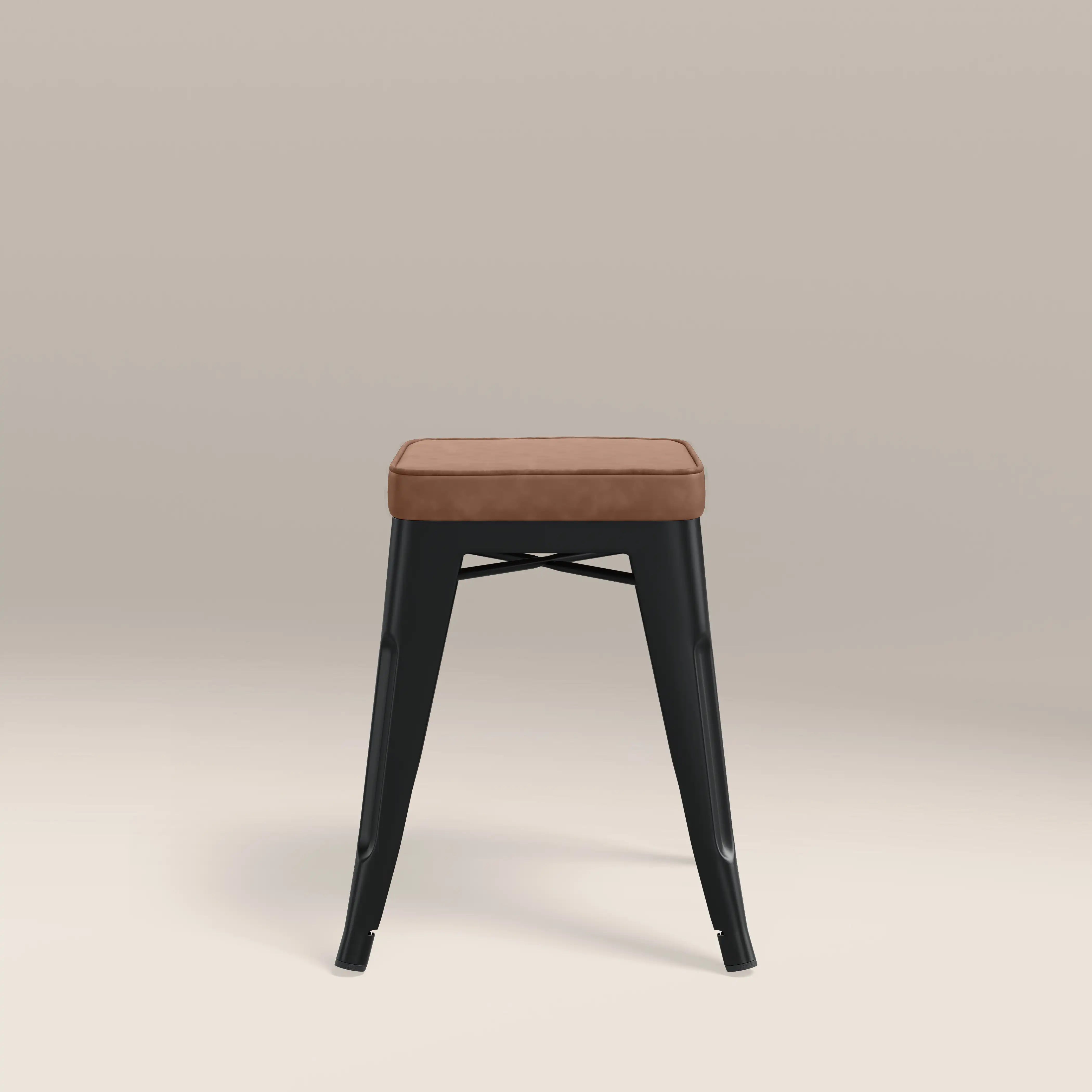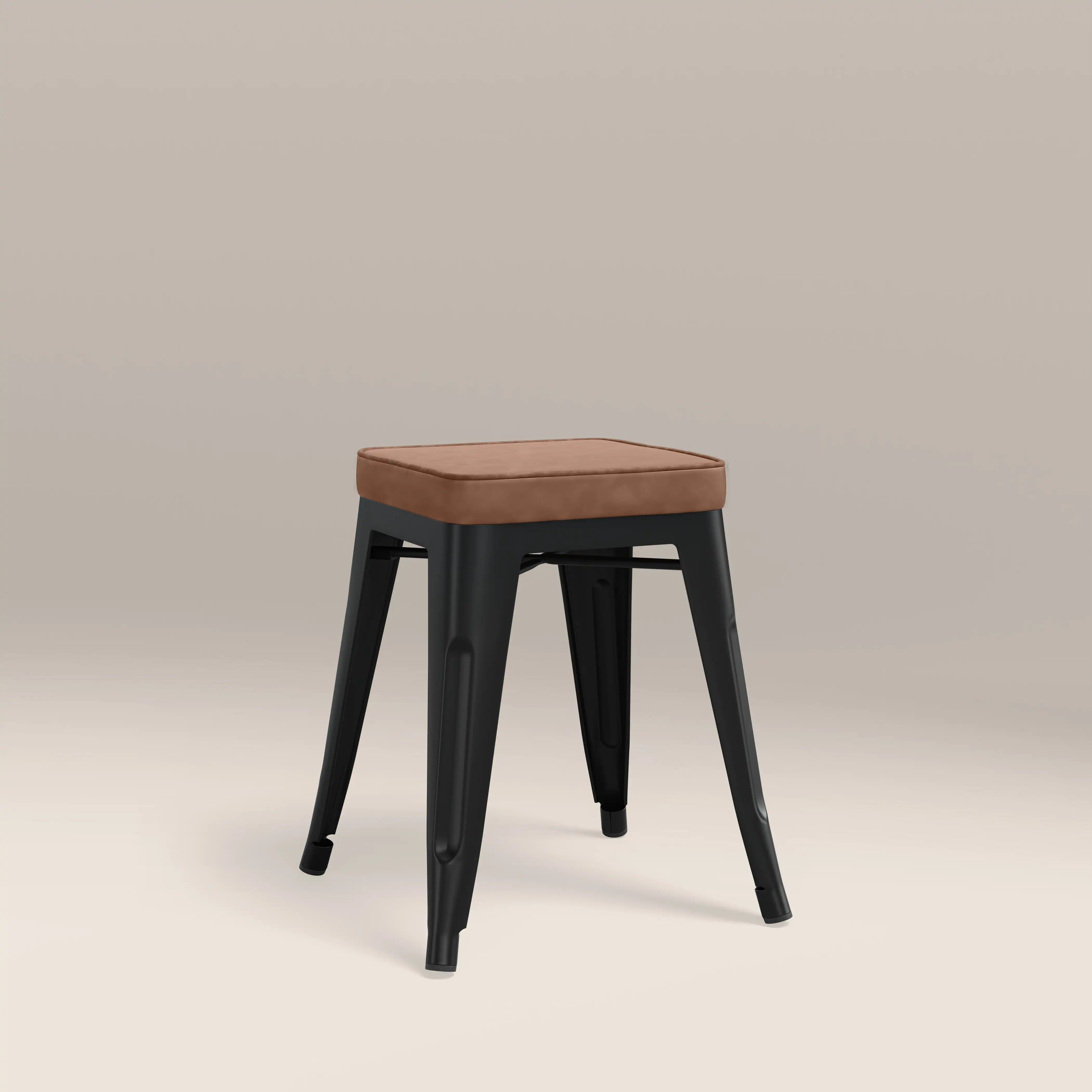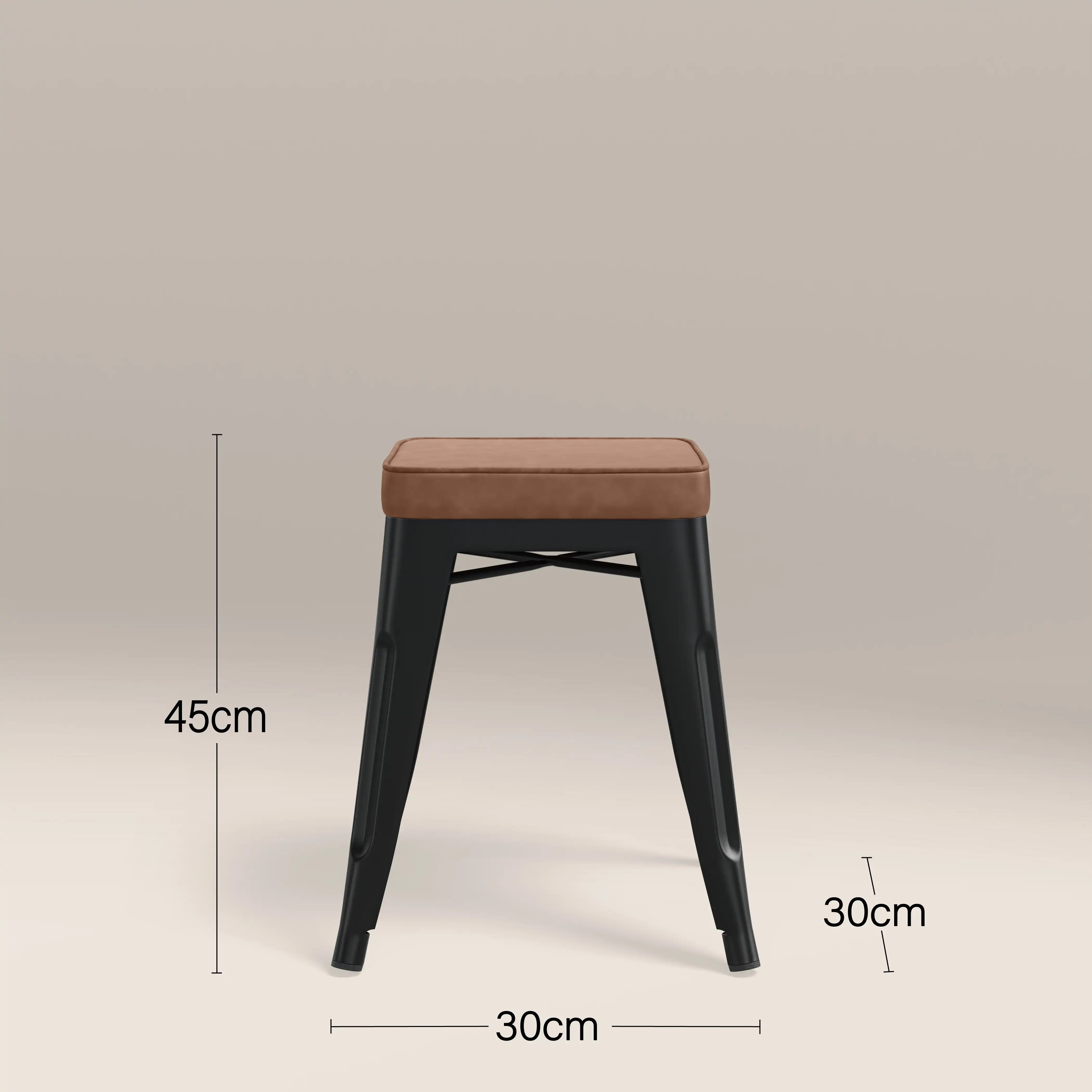 Inspired by Xavier Pauchard Tolix range, this industrial rustic style showcases a sturdy metal frame in a matte black finish with a tan faux leather seat. The Tolix Low Stool is the epitome of industrial design in a classic versatile style, not to mention durable. Perfect for modern homes looking for an ideal space-saving solution, the Tolix Stool range is easily stackable.
