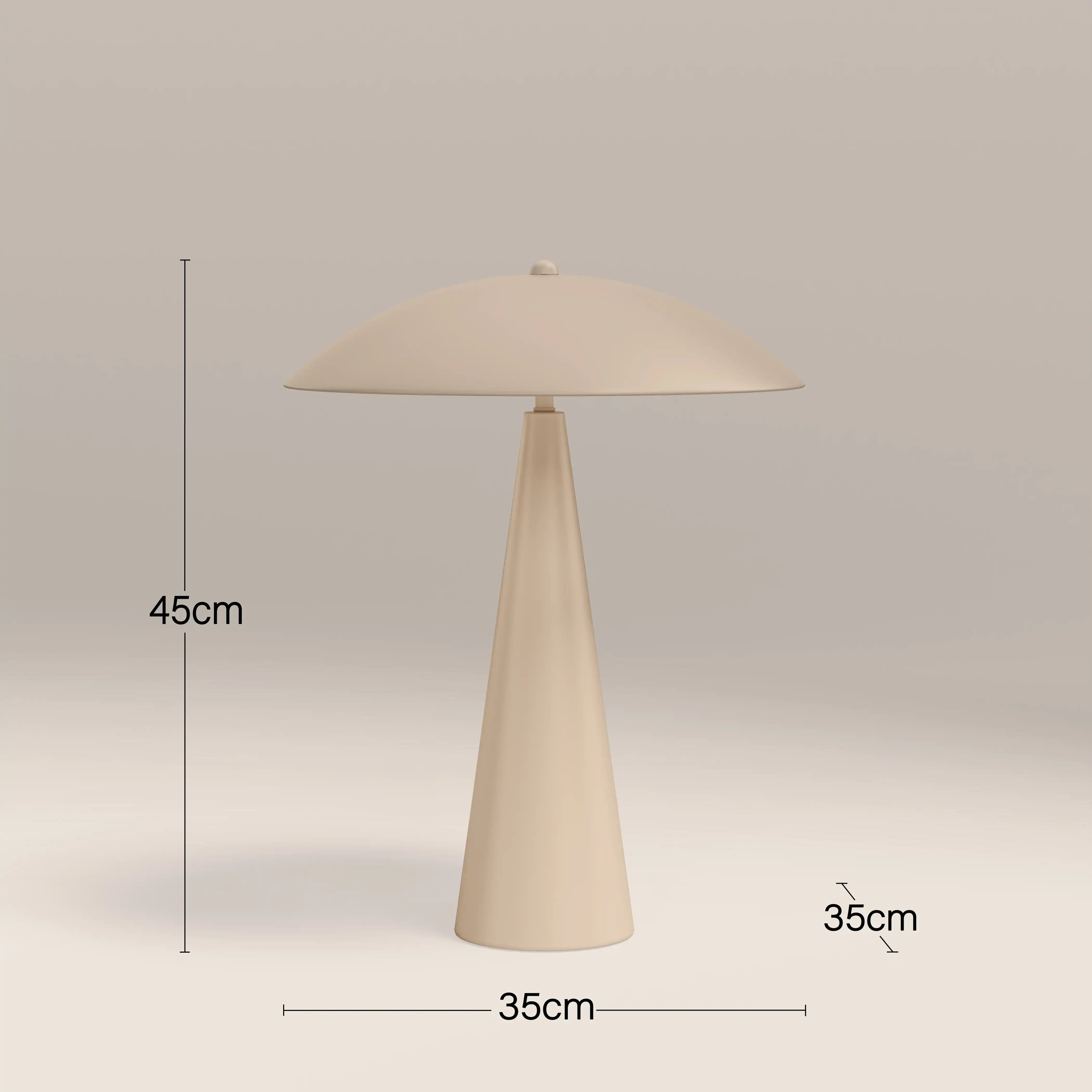 The Valence Table Lamp - a refined approach to the iconic mushroom lamp. With smooth lines and a matte nude finish, the Valance Metal Lamp is a style statement, ideal for bedrooms and living spaces. With post-modernist simplicity and a warm colour, this metal table lamp is anything but plain. Made from durable iron with a dimmer switch and thick black and white cord.