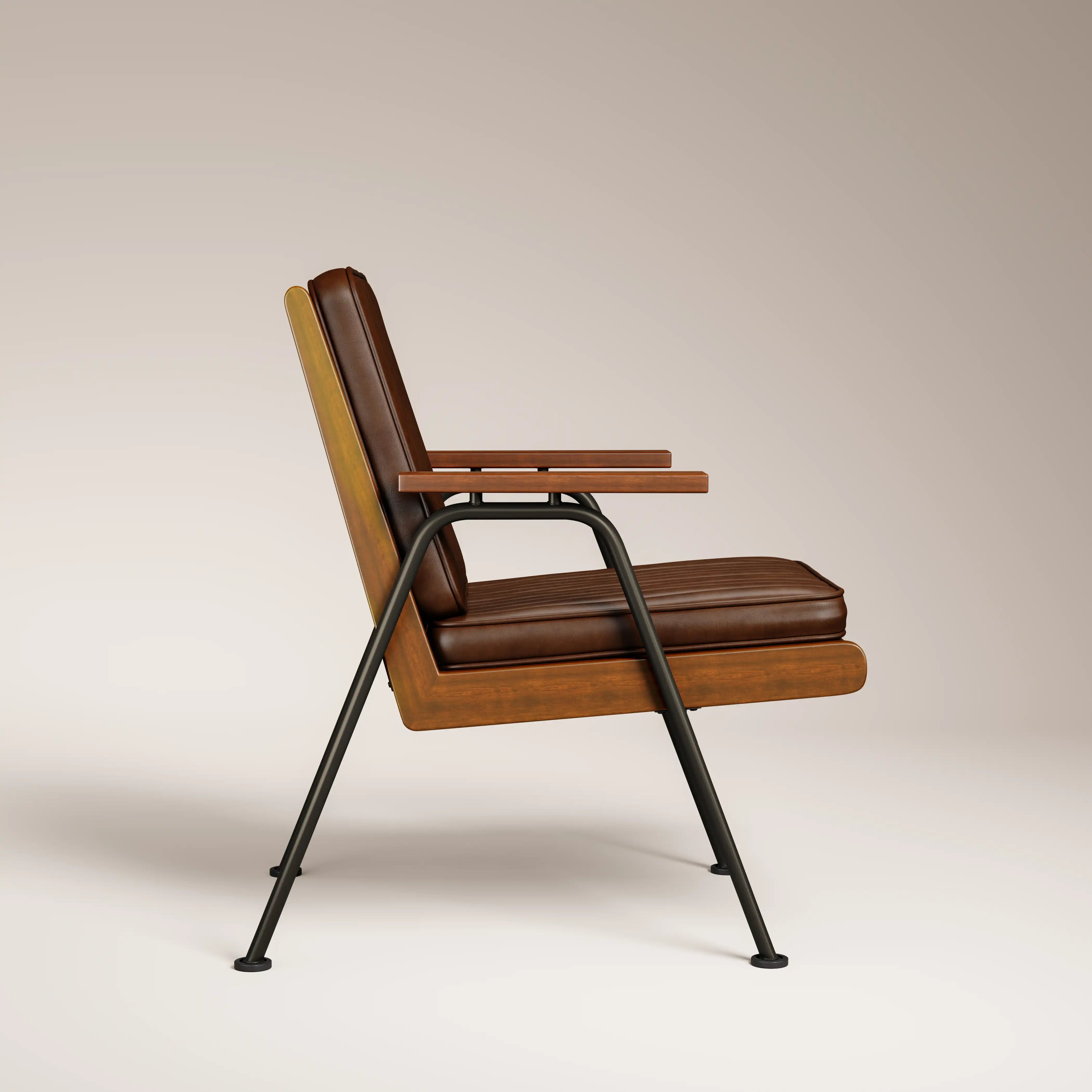 Introducing the industrial Wickham accent chair in brown faux leather, with walnut-stained wooden armrest and metal frame - ready to bring a designer look to your living room. This occasional chair has a stylish minimal black metal frame finished with a cosy, durable upholstered seat.