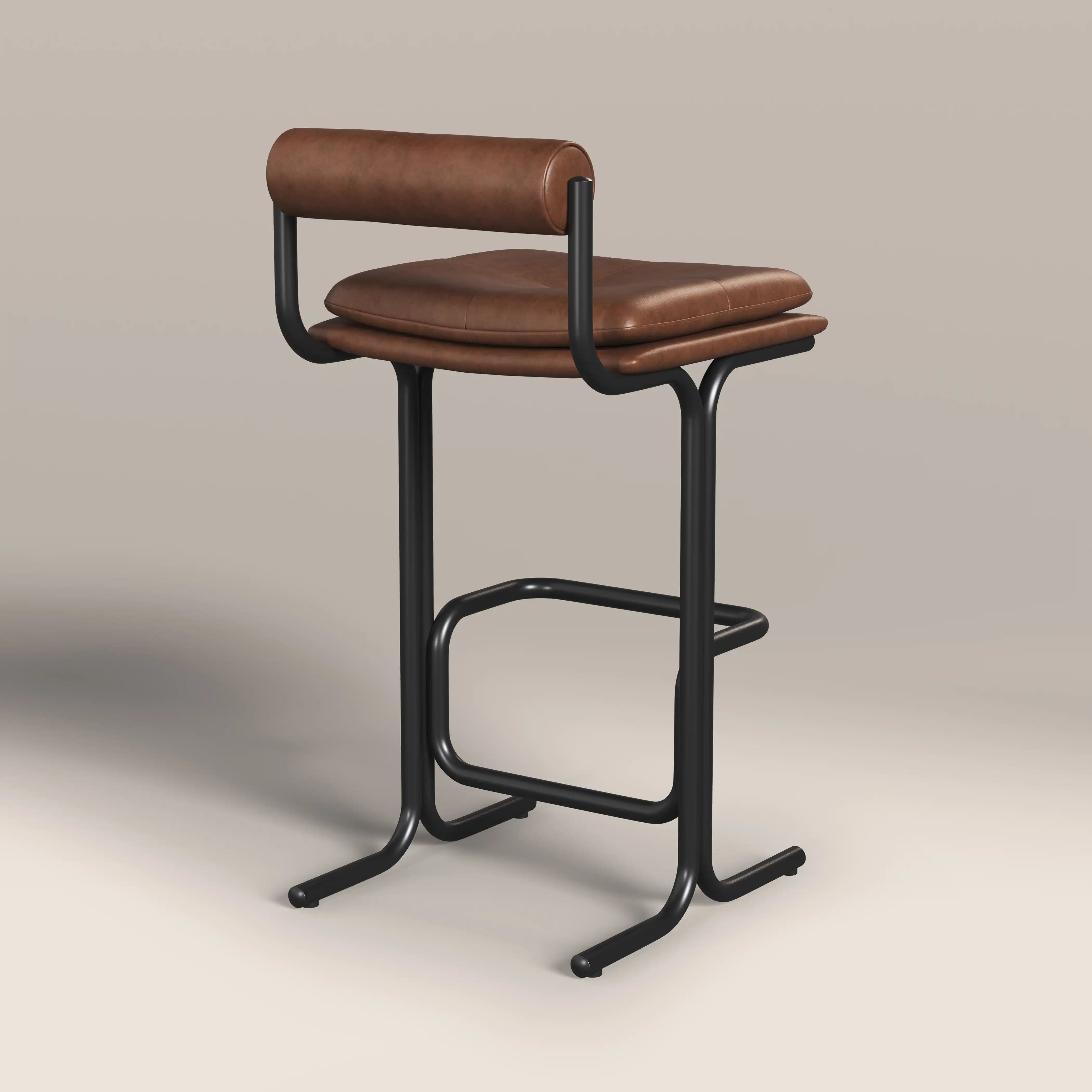 Industrial edge, mid-century mood – Wilbur Faux Leather Bar Stool is here to steal the spotlight. The vintage tan padded seat and bolster cushion backrest in our sumptuously soft faux leather gives luxurious comfort, while the black metal frame and handy footrest is sleek, practical, and stylish. Get ready for long chats over coffee and cocktails with this retro bar stool.