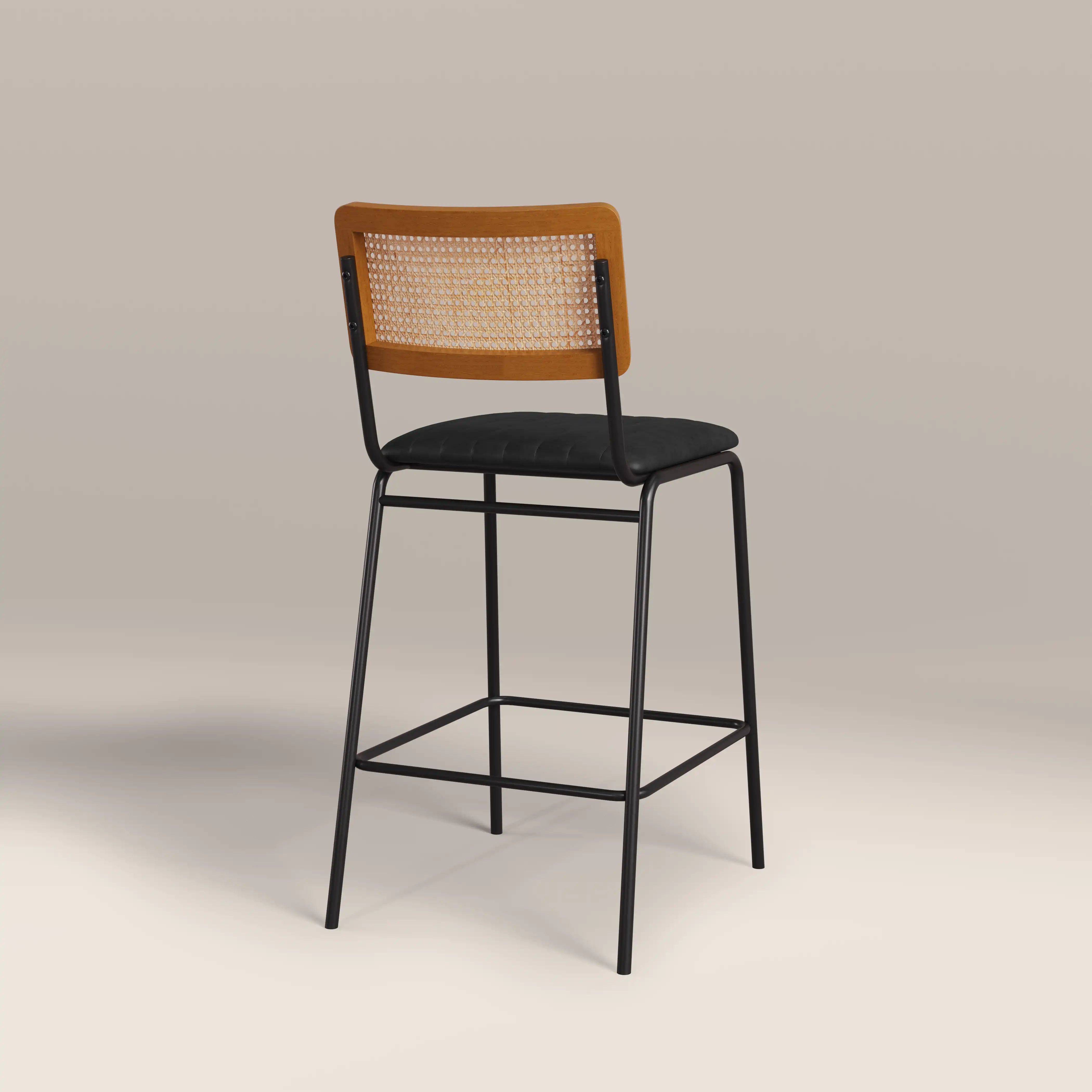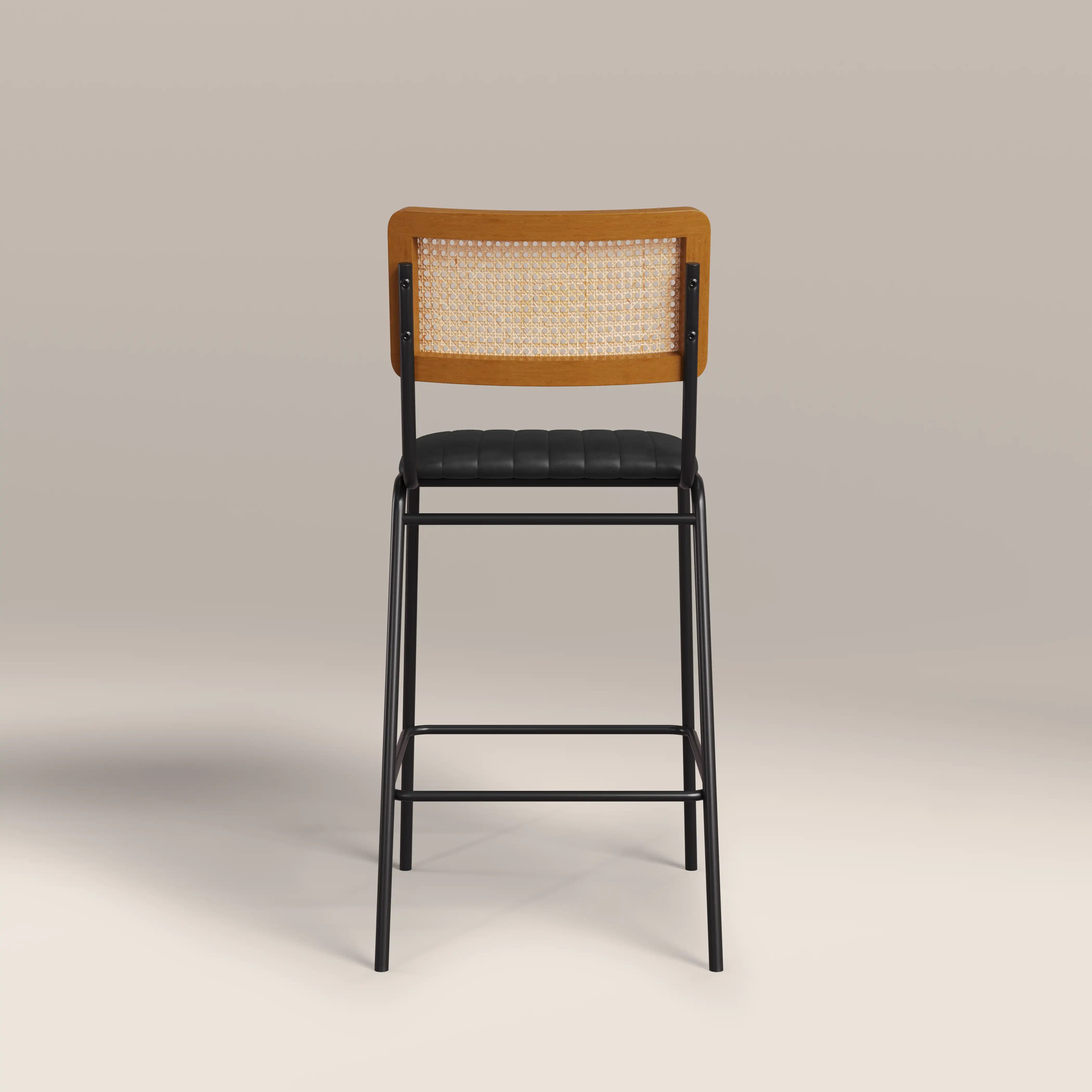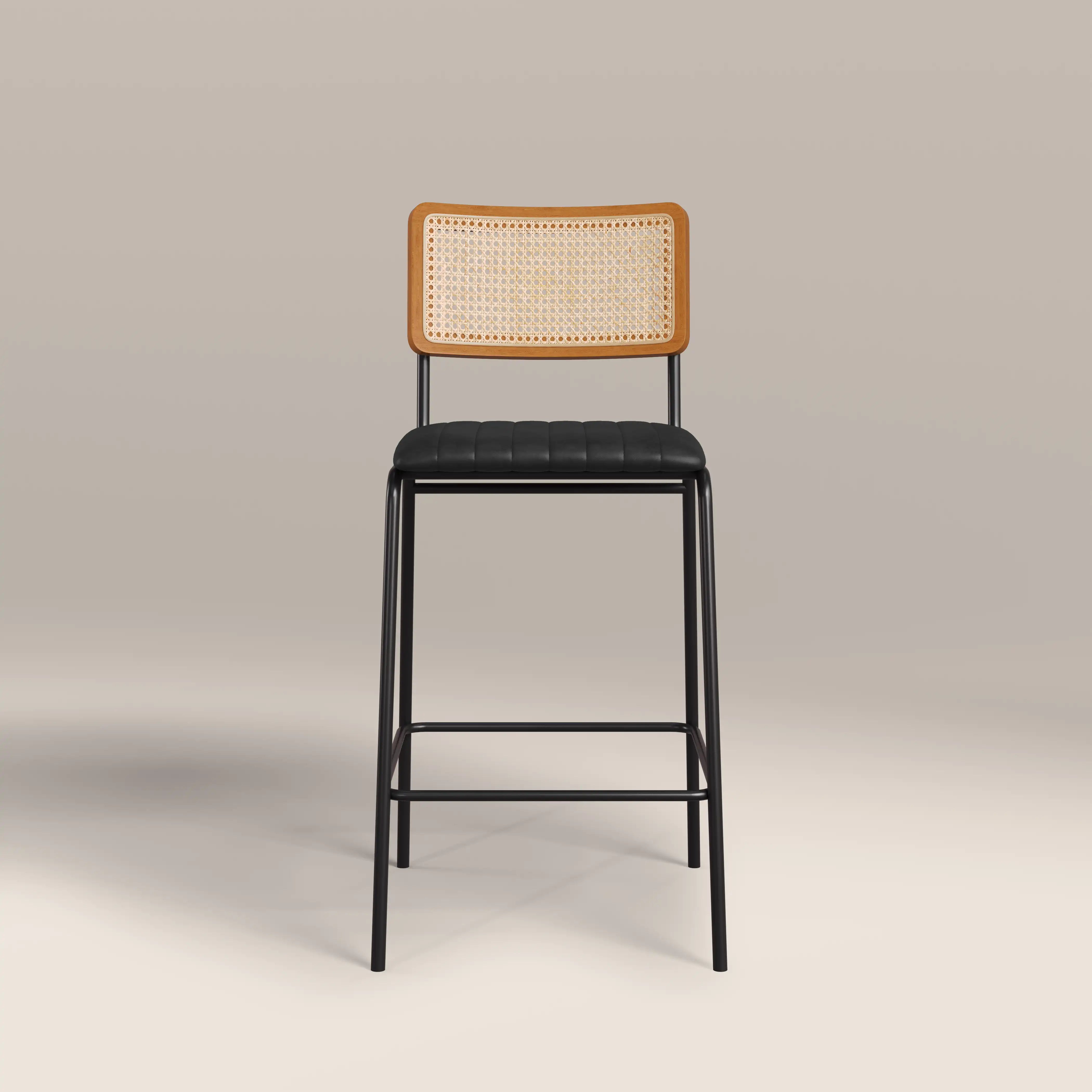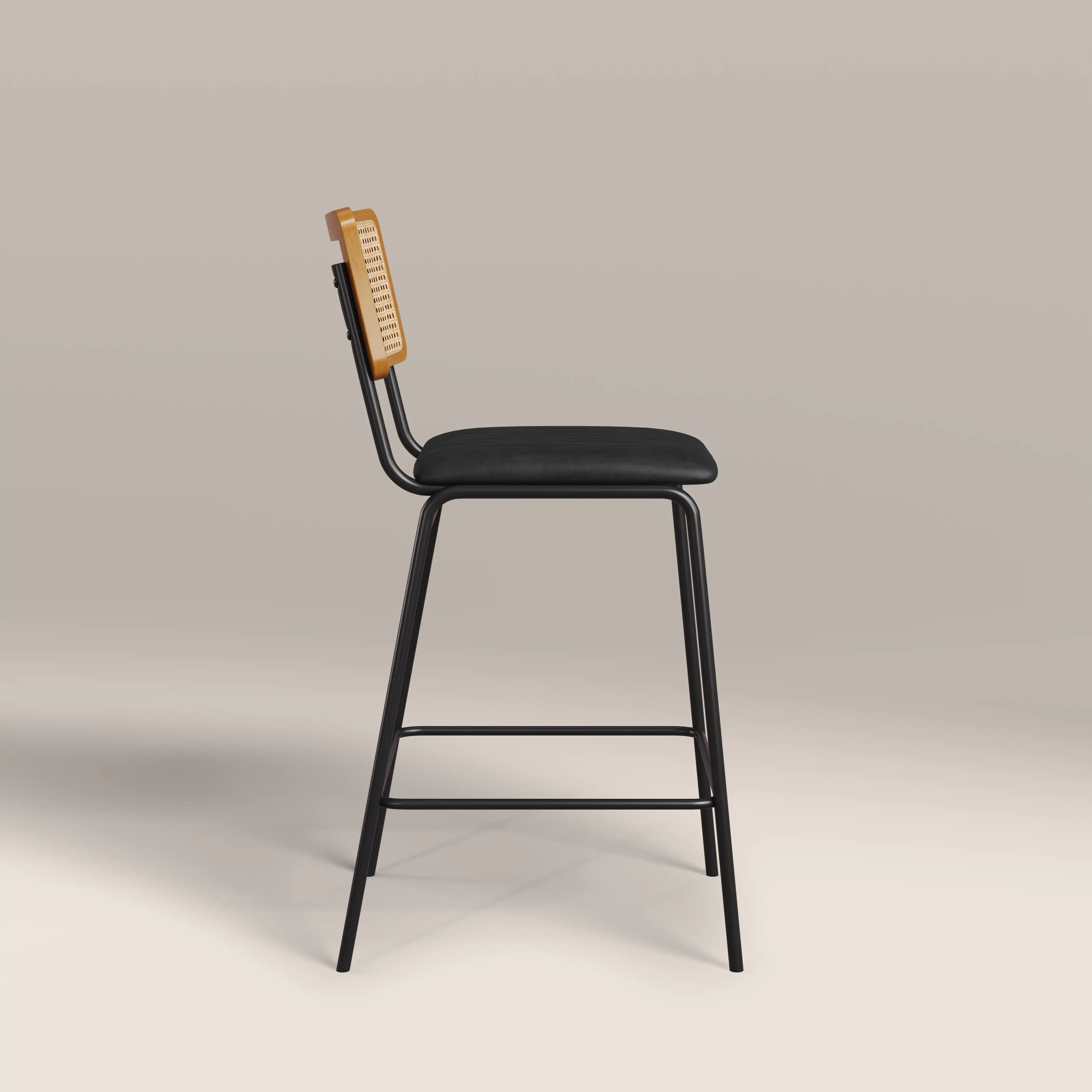 Calling all industrial and Nordic lovers! The Willis Kitchen Stool fuses these two styles perfectly. The seat is upholstered in a soft vintage black faux leather with stitched detailing sitting within a black frame for that industrial edge, whilst the clean silhouette and cane backrest bring all the Scandic design influence you need. The Willis Black Kitchen Stool offers a softer approach to both of these modern styles.