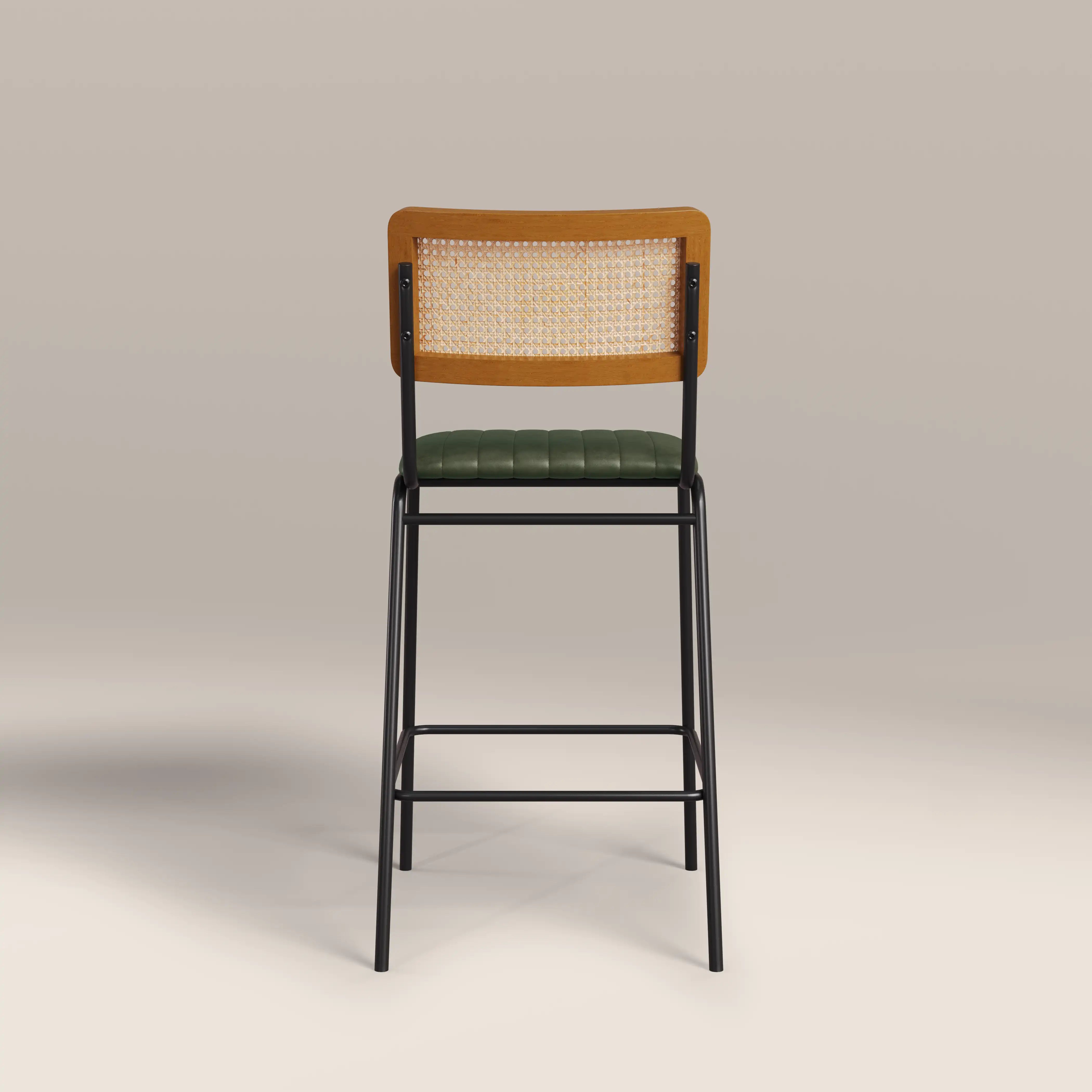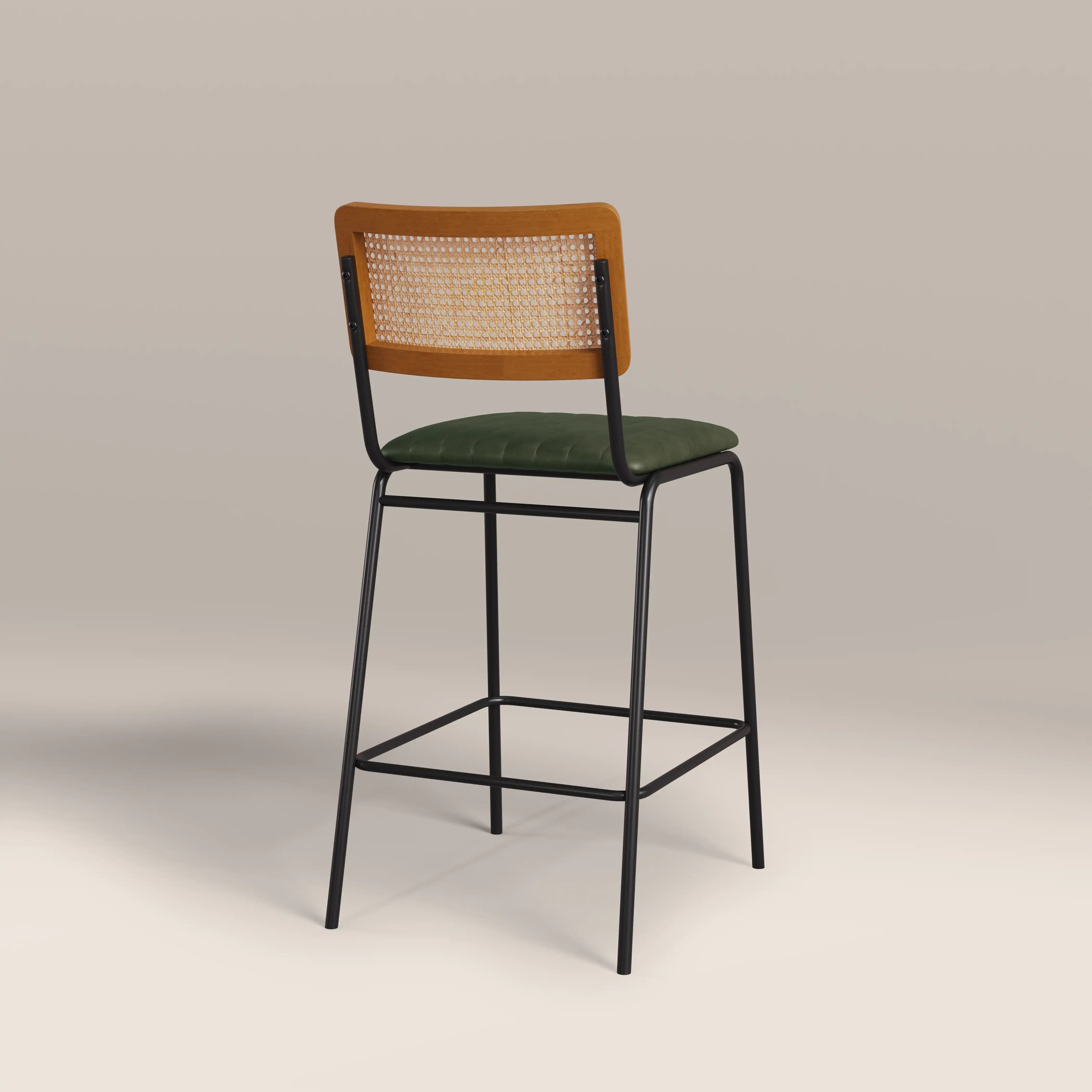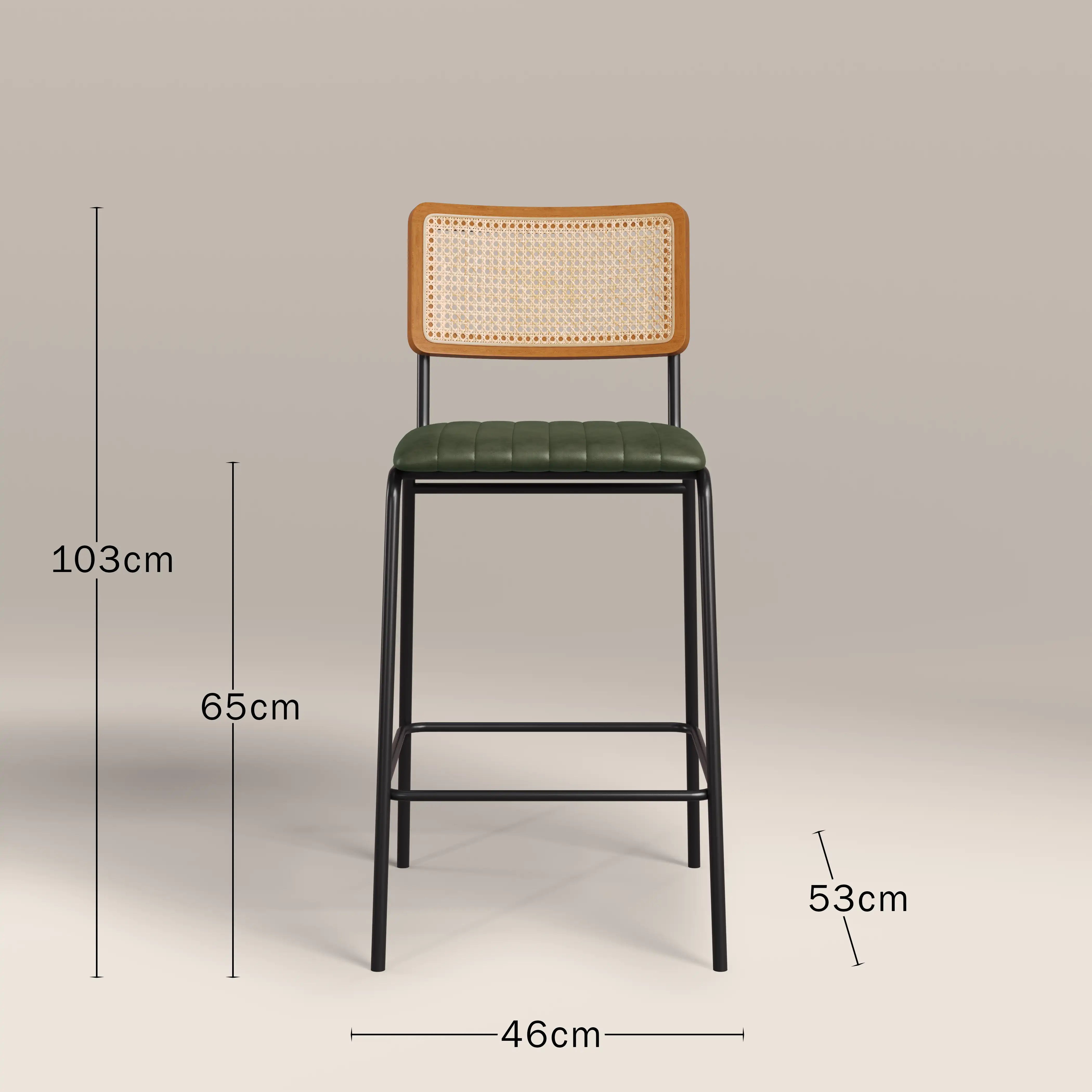 Calling all industrial and Nordic lovers! The Willis Kitchen Stool fuses these two styles perfectly. The seat is upholstered in a soft vintage green faux leather with stitched detailing sitting within a black frame for that industrial edge, whilst the clean silhouette and cane backrest bring all the Scandic design influence you need. The Willis Green Kitchen Stool offers a softer approach to both of these modern styles.